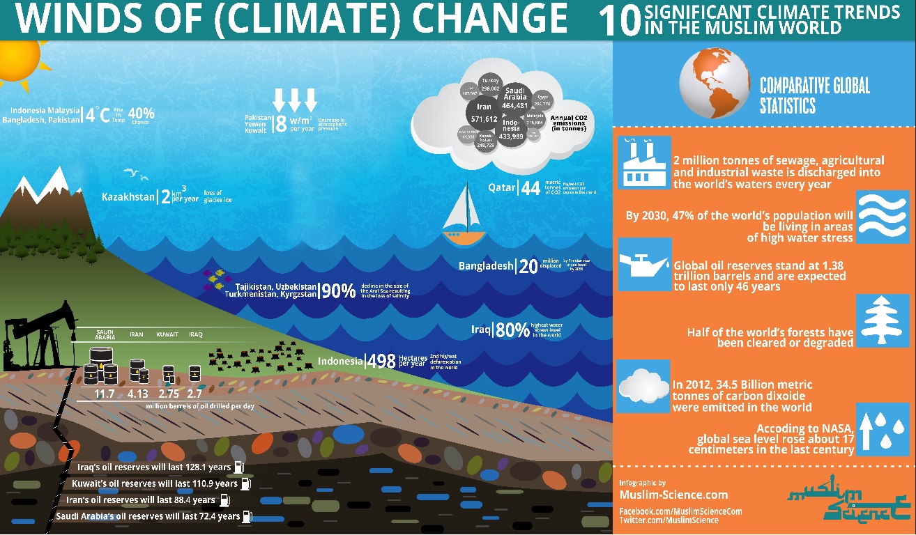 The result? An infographic that brings forth some key fronts of the climate change within the Islamic World:
